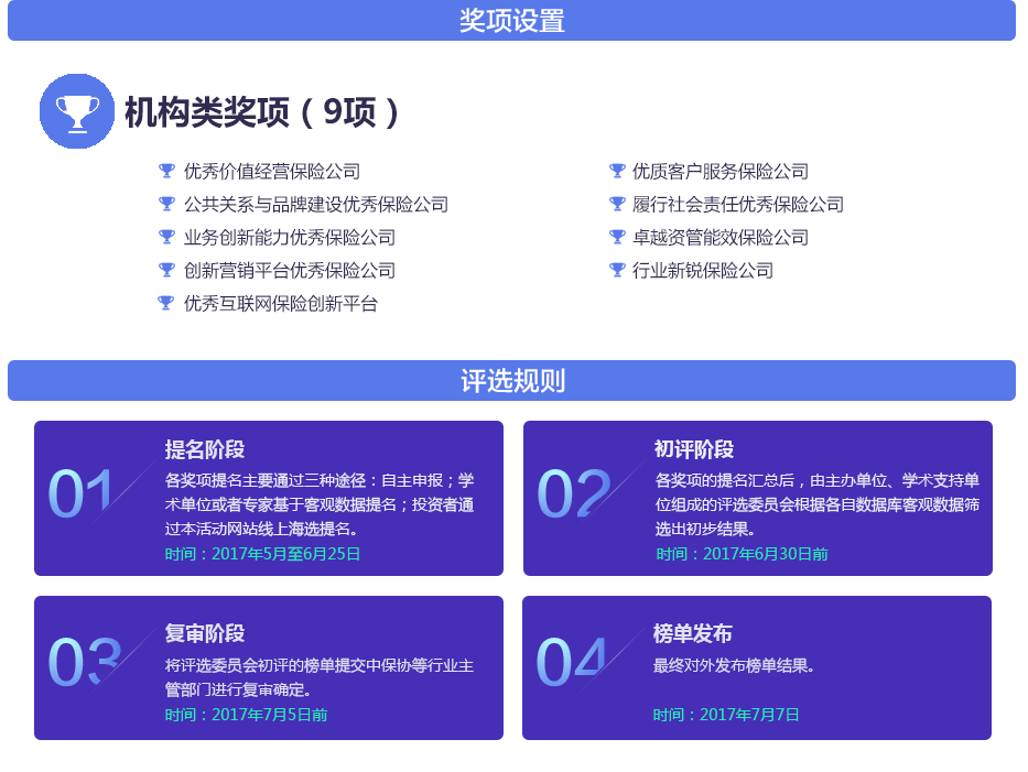 本次評選將秉持客觀真實、公正透明、范圍廣泛的原則,以“第5個保險公眾宣傳日”活動為契機,再次將視角聚焦于新生態(tài)環(huán)境下中國保險業(yè)最具經(jīng)營智慧的風云企業(yè),力求準確把握保險風云脈絡(luò)。榜單以壽險、產(chǎn)險、資管為經(jīng)度,以經(jīng)營理念、品牌建設(shè)、業(yè)務(wù)創(chuàng)新、客戶服務(wù)、償付能力、社會責任、資管能效為緯度來設(shè)置獎項。